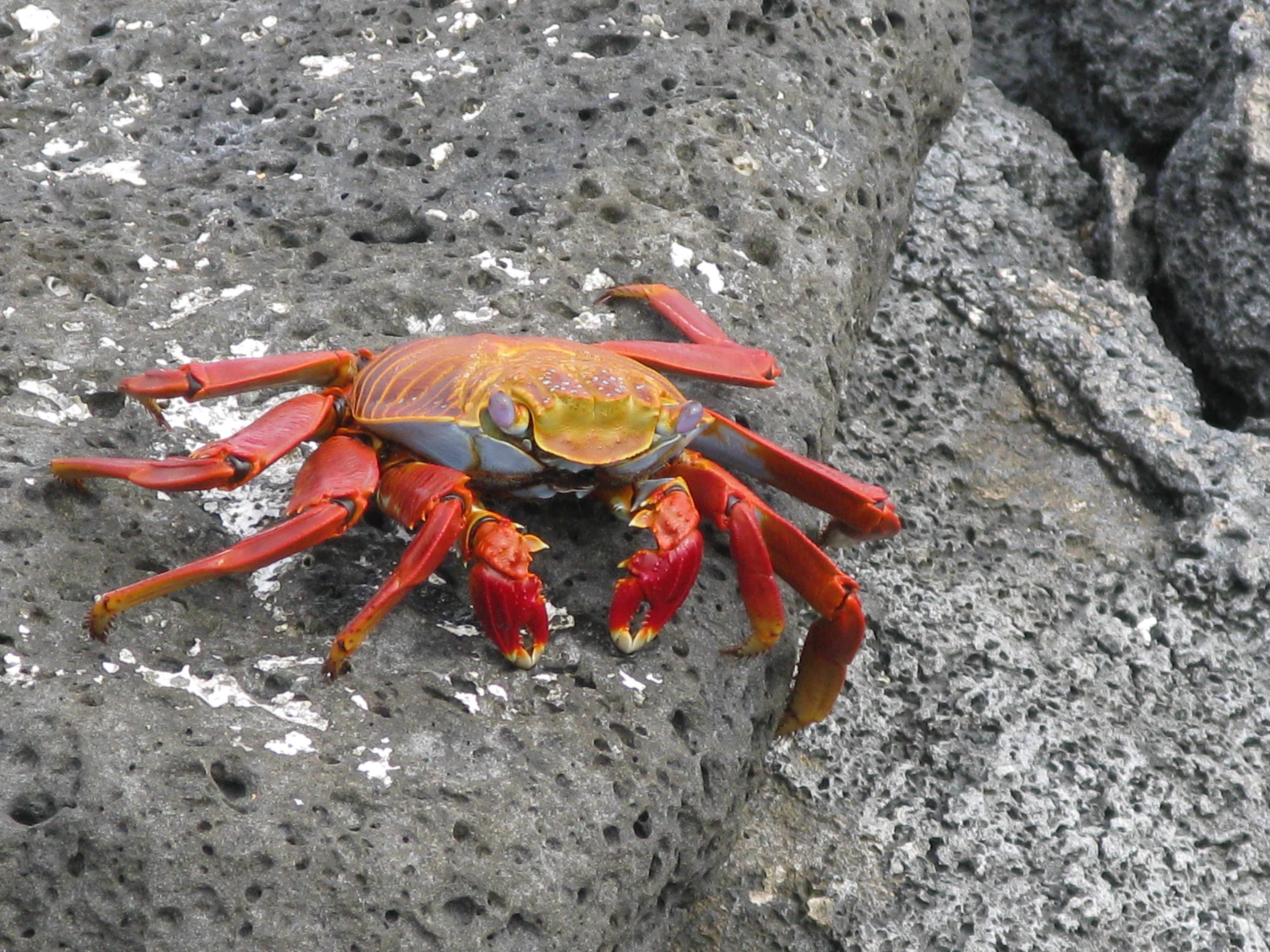 Stepping off the ferry on Santa Cruz Island, one of the largest in the Archipelago, my eyes caught a Sally Lightfoot crab scurry across the volcanic rocks. Hoping to see some of these colorful, animated creatures during the trip, my guess was that over 150,000 crossed our paths during the next four days. They were everywhere, their vibrant pigments contrasting the black rocks. The babies are black for protection; the adolescents transform through a red period before assuming, as adults, a myriad of visually sensational colors.