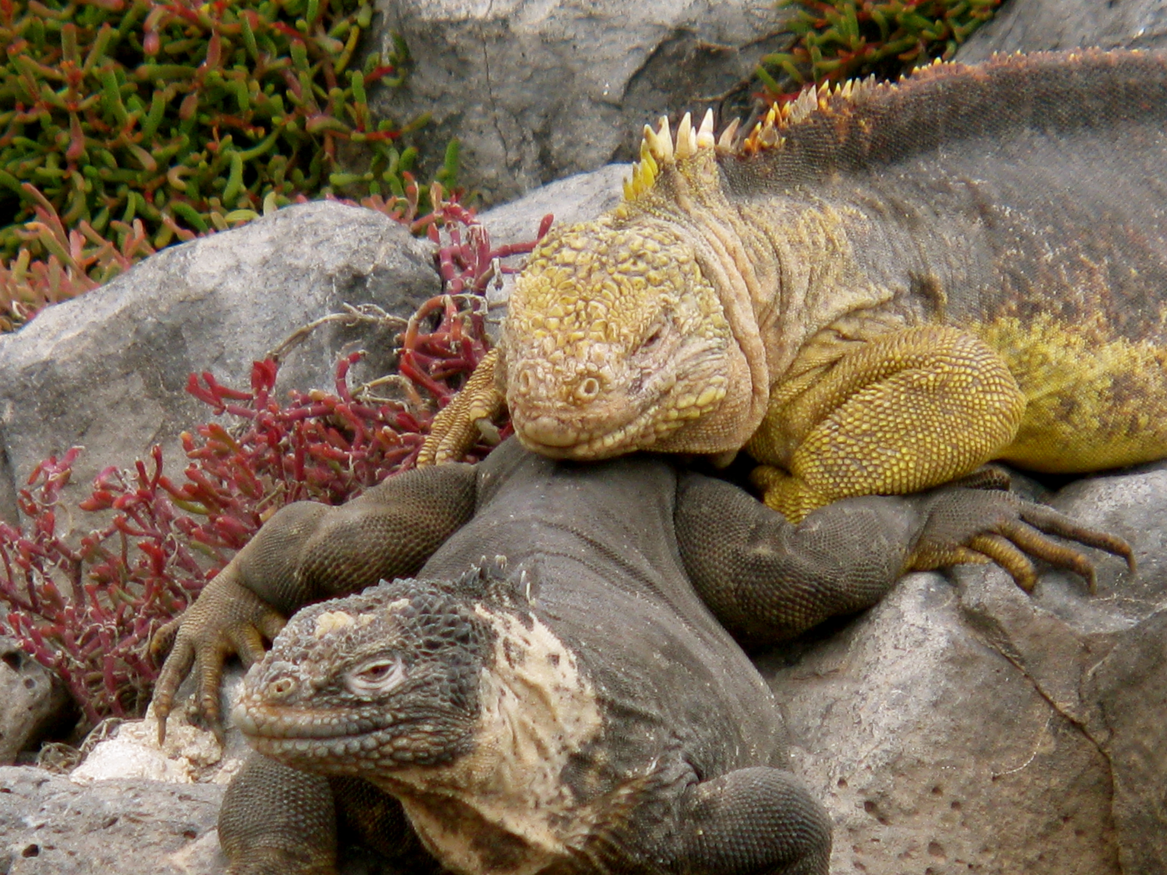 The male iguana that resides on South Plaza Island is unique, displaying lurid colors to attract females during mating season. The ones we encountered, 2.5-3 feet in length, were